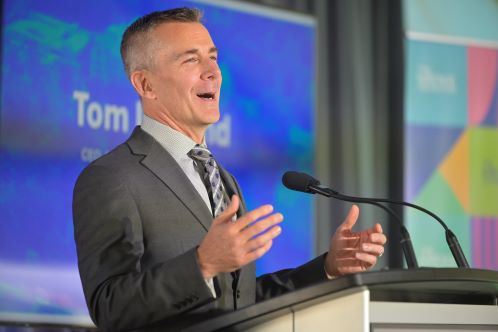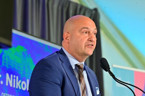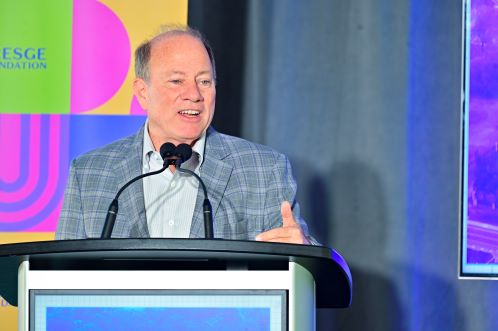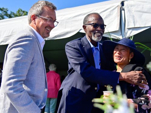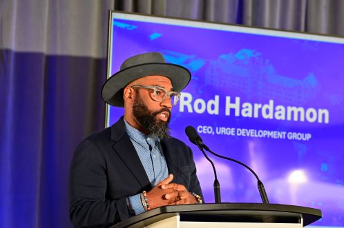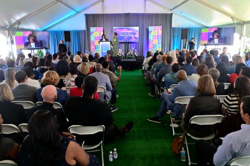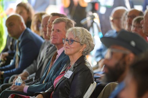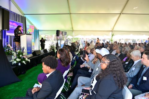 Speakers and attendees at the announcement of Kesge’s new headquarters and $180 million investment into Northwest Detroit, held September 12, 2025, on the Marygrove Conservancy campus.