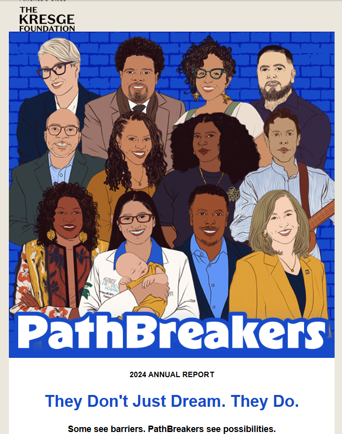 Kresge 2024 Annual Report and Podcast: In America’s cities, progress doesn’t happen by accident. It takes courageous individuals to challenge systems, vision to imagine better futures, trust to bring along communities, and determination to create pathways where none existed. PathBreakers do all of this. They cut through the noise, the red tape, and all the other barriers to progress. In this report, we celebrate 12 remarkable PathBreakers whose stories illuminate how determined individuals can transform urban landscapes and create better futures for everyone.