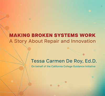 Making Broken Systems Work: A Story About Repair and Innovation is a case study of the California College Guidance Initiative (CCGI). It traces CCGI’s origins to a 2012 administrative error in which 114 students were erroneously denied admission to California State Universities because of a 10th-grade Spanish credit mis-evaluation. That error exposed deeper systemic failures in how student academic data, course credits and advising systems interoperate.